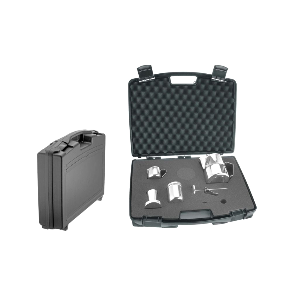 Barista kit including: Tamper, milk jug, creamer jug, thermometer, chocolate shaker.